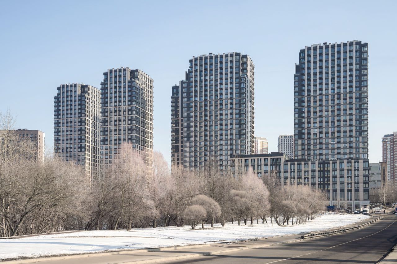 Мотив фасадов – ритм жилых окон, использование отступов в верхней части башен, декоративные вставки на стилобате, отсылают к архитектуре жилых зданий Нью-Йорка 30-х годов, перекликаясь со «сталинским ампиром». Это придает комплексу элегантную торжественность, и сохраняет историческую преемственность с московской архитектурой.